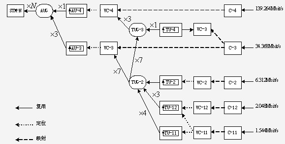 映射:在SDH邊界處使支路信號適配進(jìn)虛容器過程。
