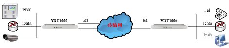 點對點的應(yīng)用,通過TDM傳輸網(wǎng)/E1專線網(wǎng)絡(luò),可實現(xiàn)對視頻、語音和控制信號的雙向傳輸。可通過鍵盤或搖桿實現(xiàn)對對端云臺的控制,支持視頻和語音綁定功能。