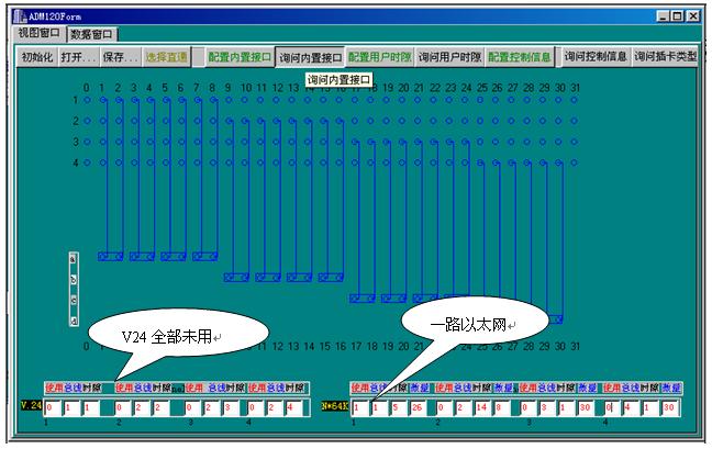 V24代表擴(kuò)展內(nèi)置接口四路V24手動(dòng)設(shè)置時(shí)隙項(xiàng)。