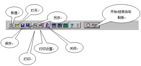 主工具條主要由新建、打開、保存、另存、打印、打印設(shè)置、關(guān)閉、開始/結(jié)束自動(dòng)刷新等組成。
