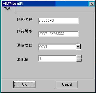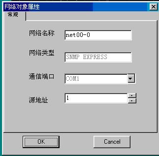 登錄成功后,進(jìn)入管理主窗口,選中“Tree From”對(duì)話框的“文件1”,在鼠標(biāo)右鍵菜單中有“增加網(wǎng)絡(luò)”,在此您可以增加自己的網(wǎng)絡(luò)(默認(rèn)時(shí),已經(jīng)為您建好了網(wǎng)絡(luò)“NET00-0” )。選中“NET00-0”,點(diǎn)鼠標(biāo)右鍵,點(diǎn)擊彈出菜單中的“對(duì)象屬性”。在網(wǎng)絡(luò)對(duì)象屬性當(dāng)中:網(wǎng)絡(luò)類型選擇“SNMP Express”; 通訊端口要選擇當(dāng)前PC機(jī)使用的COM口(如COM1);“源地址”是指與PC連接的ADM120主機(jī)站址,可以從0到32(如1號(hào)站 連接PC)。設(shè)置完成后單擊“OK”。