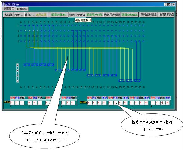 電話卡占用了前四個(gè)時(shí)隙,第5時(shí)隙之后的26個(gè)時(shí)隙全部為以太網(wǎng)使用。